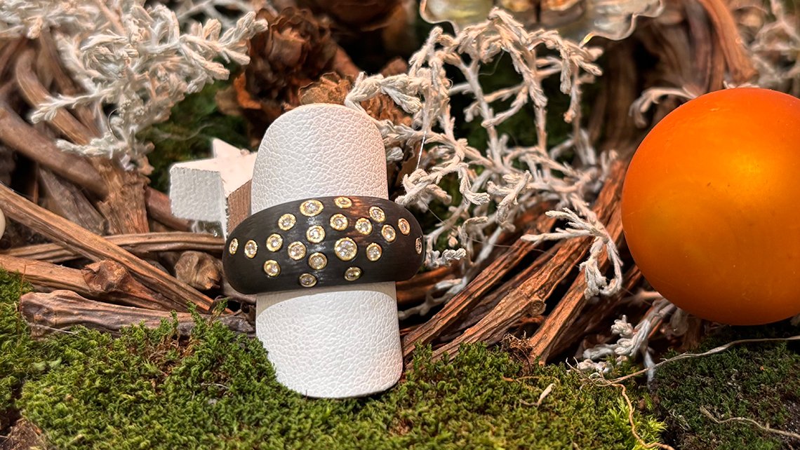 Hochwertiger Schmuck mit Brillanten, Gelbgold, Weißgold und Carbon kombiniert. Toller Tragekomfort, tolle Optik!